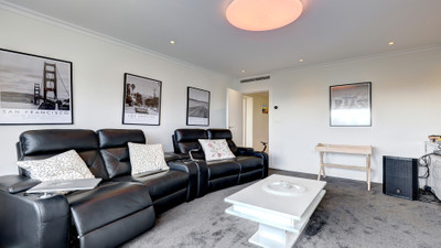 The bright and airy living area opens onto an extended conservatory-style terrace that captures sunlight from sunrise to sunset. It’s the perfect space to relax, dine al fresco, or entertain year-round while enjoying the views and natural light.