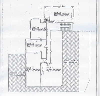 The asset package consists of a set of six premises distributed over two floors. On the first floor, there are four premises, three of which are fully equipped for office use, with areas of 82.16 m², 60.37 m², and 54.26 m² respectively. The fourth premise, in its raw state, offers 104.30 m² of interior space and a terrace of 133.26 m². Additionally, on this same floor, there is another raw premise with 182.58 m² of interiors and a large terrace of 195.50 m². On the second floor, there is an additional premise finished for office use with an area of 86.08 m², ideal for administrative or commercial activities.