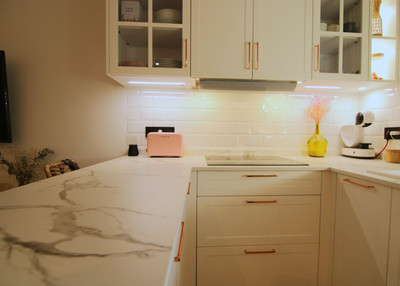 Designer kitchen with breakfast bar, fully equipped with top-brand integrated appliances