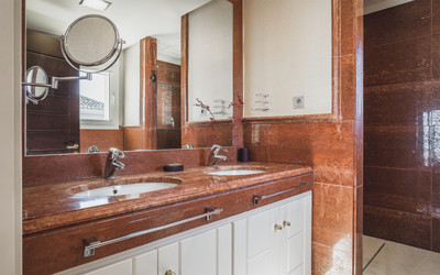 5 double bedrooms, all of them exterior with private terrace and their respective en-suite bathrooms. Guest toilet, gym, Turkish bath, sauna, Jacuzzi, games room, cinema with a nice built-in bar, office, storage room, laundry room and garage.