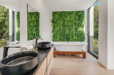 Upstairs are three spacious bedrooms, each with a private bathroom and access to a wide terrace with panoramic sea views. The master suite includes a dressing area and enjoys the best outlook in the house. Every room feels private and comfortable yet remains connected to the outdoors.
