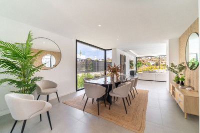 At the center of the home, a sophisticated open-plan living area connects effortlessly to the landscaped garden through expansive glass doors. Outside, a heated infinity-edge pool, alfresco dining area, and state-of-the-art BBQ set the stage for relaxed Mediterranean living and stylish entertaining.