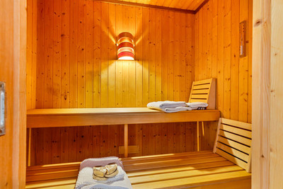The house has two bedrooms and two bathrooms. The master bedroom has an en-suite bathroom and private sauna, creating a true relaxation space within the home. The second bedroom is currently used as a living room/office, offering versatility according to the needs of the future owner.