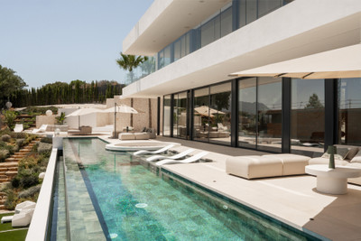 Located within the exclusive gated community of Monte Mayor in Benahavís, this brand-new modern villa offers an exceptional lifestyle experience. Set on a 2,068 m² plot and boasting 872 m² of refined living space, the property enjoys panoramic views over the Mediterranean Sea and surrounding mountains, blending contemporary luxury with natural beauty.