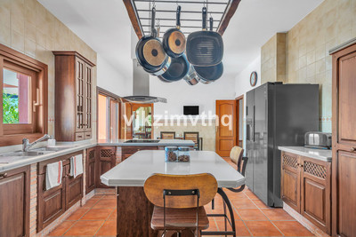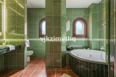 Spacious Living: The villa boasts five generously sized double bedrooms, four of which have en-suite bathrooms. The master suite is a standout, featuring a vaulted ceiling and a round jacuzzi bathtub.
