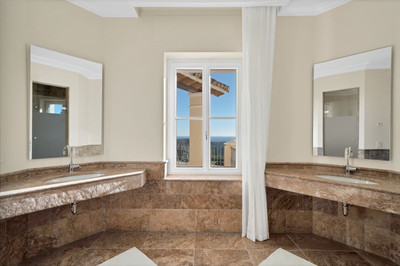 This exclusive property offers stunning views of the sea, the Spanish and African coasts and Gibraltar and is situated in a very private and protected location in the elegant and gated Marbella Club Golf Resort. Built with the highest quality; solid wooden floors, Travertino marble, custom made windows, excellent isolation, very modern domotic system, solar and heat pumps for hot water and heating, individually adjustable underfloor heating (solar energy) throughout the house, illuminated and heated swimming pool, poolside barbecue area, spa and gym area, wine cellar, elegant eat-in kitchen, spacious ensuite bedrooms with adjoining bathrooms, are just some of the many outstanding amenities of this beautiful home. The garden is a dream, it has been lovingly landscaped and planned by its owners and has a fully automatic irrigation system. The flat plateau plot has been secured on all sides and is well fenced. Marbella Club Golf Resort with its 18-hole golf course is very privileged and private, yet only 20 minutes away from Marbella, located in the middle of the beautiful Benahavis mountains. This residential area has a gated entrance and 24-hour security. Marbella Club Golf Resort has a wonderful restaurant just 10min walk from the villa where You can enjoy a wonderful meal and a glass of wine.