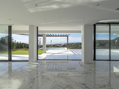 In the exclusive gated community of Benahavis, Marbella Club Golf Resort, stands a newly built contemporary villa offering captivating sea views. Boasting 24-hour security, a golf course, restaurant, and an equestrian center, this residence is crafted with premium materials, featuring an open-plan design, abundant natural light, double-height ceilings, and expansive windows.