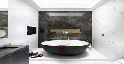 – Bathroom walls with COVERLAM plates (GRESPANIA) 2700X1200 (Color to choose)