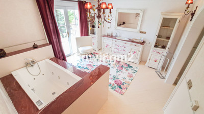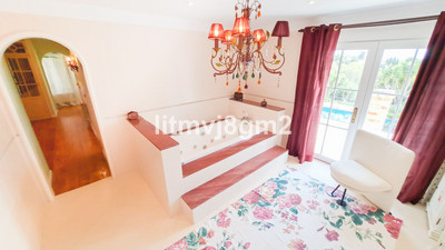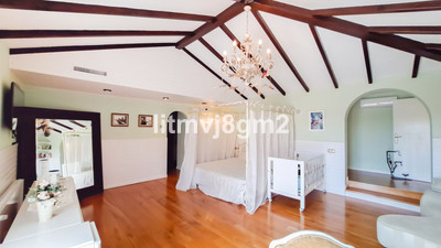 Located in Benahavis (Fuente Del Espanto) approximately 2.5kms from the beach and 2kms from the centre of the town San Pedro. Located in a cul-de-sac, the property offers a lot of privacy and at the same time is in an area with easy access to the motorway. This property consists of two levels, the ground floor offers entrance hall, large fully equipped kitchens, spacious and bright living room with fireplace, three bedrooms with on suit bathrooms, and the second floor offers enormous master bedroom with two bathrooms and two dressing rooms. The property has a fantastic landscaped, tropical garden with fruit trees and an 12-meters long pool,