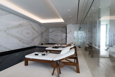 Step outside to enjoy a magnificent heated swimming pool, perfect for year-round enjoyment, alongside extensive outdoor areas designed for leisure and entertainment. The sunny terrace showcases breathtaking sea and mountain views, creating a serene setting for relaxation, alfresco dining, or hosting memorable gatherings. For ultimate wellness, the property includes a luxurious jacuzzi and a fully equipped gym.