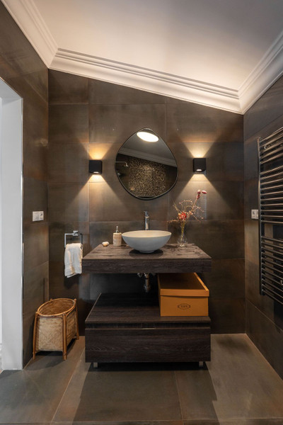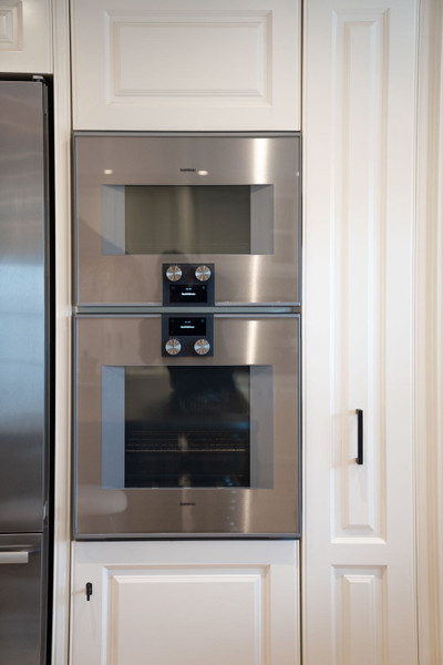 A grand entrance hall with impressive high ceilings and two bespoke wine cellars sets an elegant tone upon arrival. This leads into a spectacular 50 m² fully fitted designer kitchen, equipped with two premium Gaggenau appliances, including four ovens in the kitchen, and a charming dining area with a fireplace—perfect for hosting unforgettable gatherings. A separate back kitchen with laundry room adds practicality.