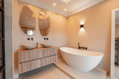 Set on a southwest-facing plot of 721 m², the villa offers 370 m² of beautifully renovated living space (2021), surrounded by a beautiful garden and a private swimming pool.