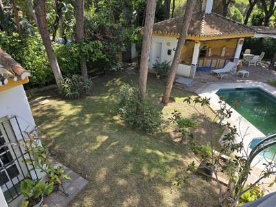 It includes numerous extras such as a laundry room, storage room, water tank, solar panels for hot water, an automatic irrigation system, private access, and spacious parking for several cars. With both well and municipal water, an efficient and economical supply is guaranteed. The villa is in good condition and offers potential for expansion or updating, making it an excellent investment. Located close to schools, leisure areas, golf courses, tennis courts, shops, a pharmacy, buses, restaurants and cafes, etc., with excellent road access. This property represents a unique opportunity for those seeking a comfortable, well-located home with great potential in one of the most sought-after areas of the Costa del Sol. The main house consists of 3 bedrooms and 2 bathrooms, and in the pool area there is a studio with a bathroom.