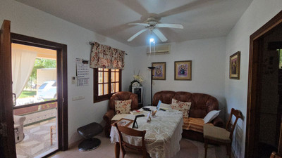 A wonderful country house-style home, but like a luxury detached house, this house consists of two bedrooms and a spacious bathroom with a shower. Then there's an inside kitchen, a cozy, comfortable living-dining room, and everything in good condition. But this property is clearly for those who prefer to live life outdoors, under the stars, close to the beach, and eating fruit and vegetables from their own land. Outside the house, there's a large veranda with plenty of space for the whole family, an outdoor fireplace, an outdoor kitchen, and a super-nice pool, with plenty of shade from the mature plants and trees that some have been caring for for 40 years.