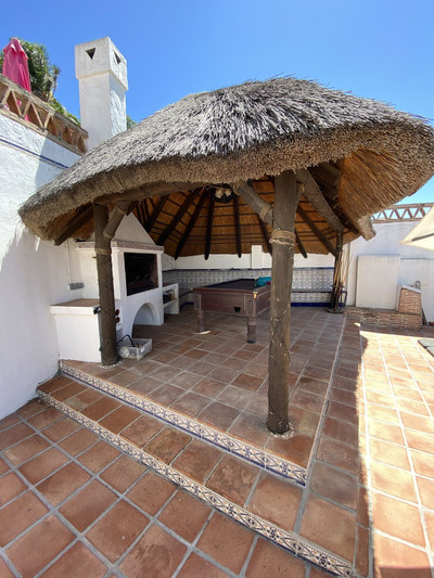 The house itself has been recently renovated to a very high standard. The living area is open, spacious and bright with and open plan kitchen with easy access to outside dining space. There are two bedrooms also on this floor both ensuite with fitted wardrobes. The master bedroom has the top floor all to itself accessed by an elegant stairway from the spacious walk in wardrobe below. There is a self contained beautiful bright one bedroom apartment below with is own open plan Kitchen, entrance and access to the swimming pool area which has a raised shaded Patio area with Traditional Spanish barbecue area and Pool Table This property really is a must see key ready for holidays or permanent living