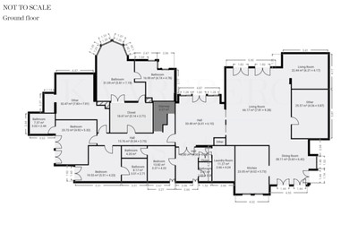 The house is laid out on 5 floors. The ground floor is where the kitchen and living room can be found as well as 3 bedrooms with en-suite bathrooms, a gym and an office.