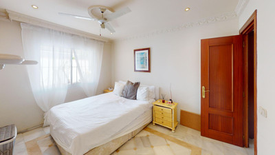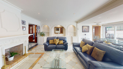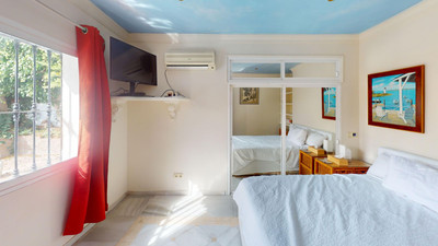 A fantastic value one level villa situated just steps away from the beach. Absolutely ideal for families, this charming traditional Andalucian villa offers a main house with 3 bedrooms and 3 bathrooms (2 of them ensuite). As you enter the villa, there is a small porch and a room used as TV area and on the left there is a small office. Next as you enter there is the quality fully fitted kitchen (with separate laundry room), semi-open to the spacious living room with fireplace and dining room. Access to each bedroom is at each corner of the living room. The large windows allow plenty of natural light and open out on to the swimming pool area with BBQ, alfresco dining area and a comfortable chill-out area. From here there are steps up to a sun deck, offering a private area to soak up the sun.