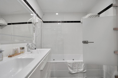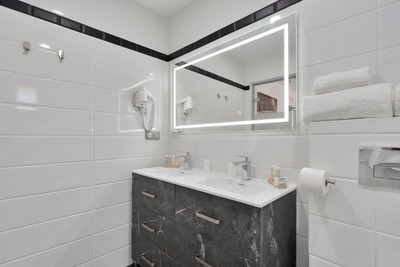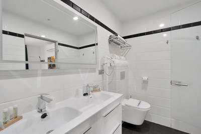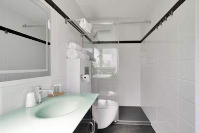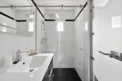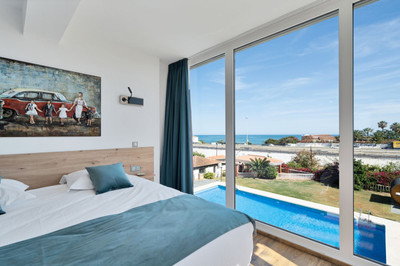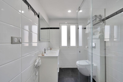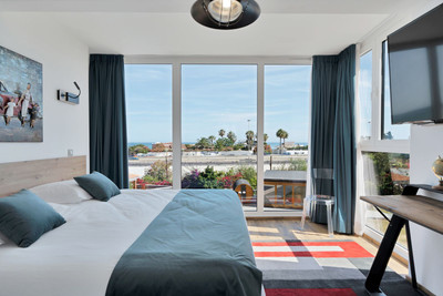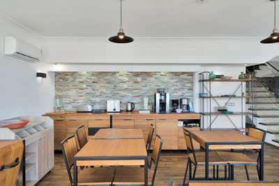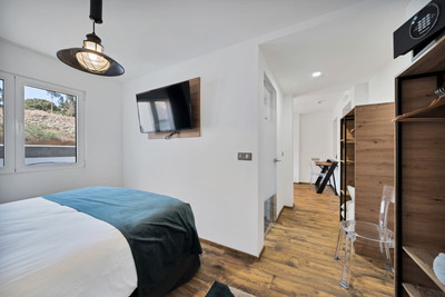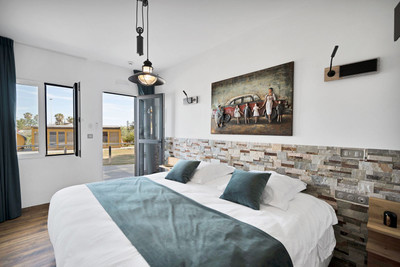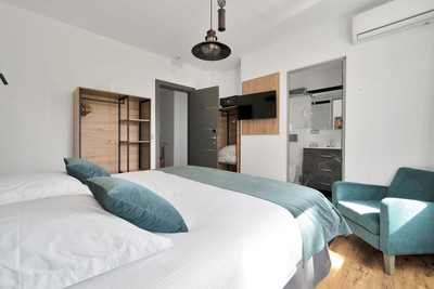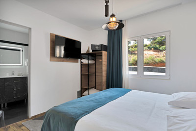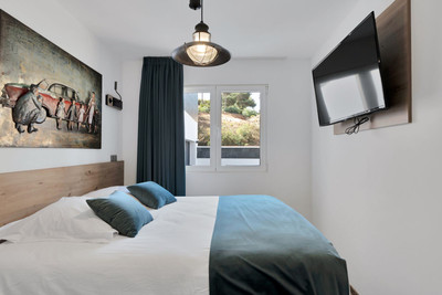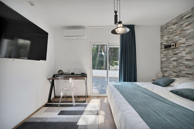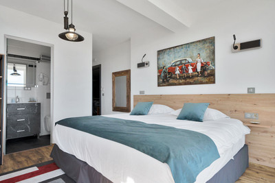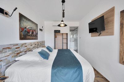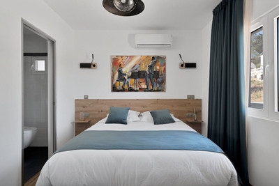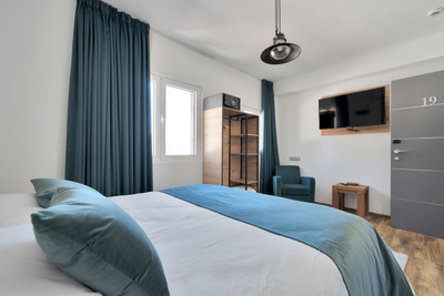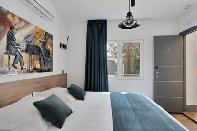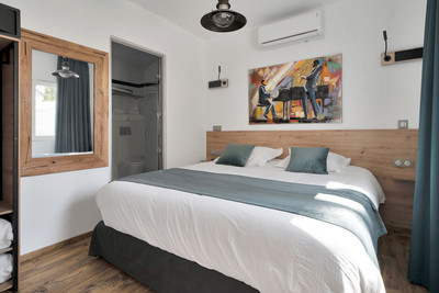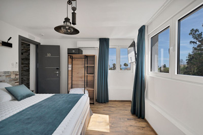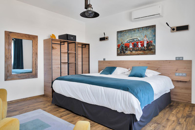We are thrilled to present a remarkable investment opportunity: a magnificent villa converted into a boutique hotel with tourist licence, just 50 meters from the beach. This property features 16 soundproofed, en-suite rooms, all fully equipped and recently renovated. As you enter through the pedestrian gate, you're welcomed by a spacious terrace, a barbecue area, and a stunning bar complete with fridges and beer taps—perfect for enjoying cocktails and relaxation. Next to the bar, you'll find a large reception area with dual entrances from the parking lot and pedestrian gate.