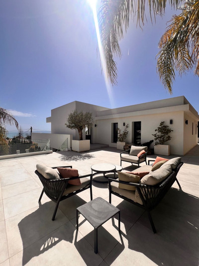 This stylish property, built to high-quality standards, combines luxury, comfort and an excellent location. The upper floor welcomes you with a light-filled open-plan living area where the modern kitchen and elegant living room flow seamlessly onto the terrace and the beautiful infinity pool, all facing the spectacular views over the Mediterranean Sea. Here, you can enjoy an unrivalled living experience every day.