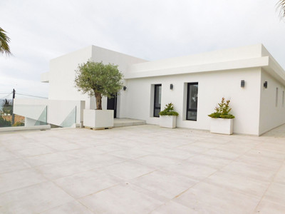 In an exceptional location, just 280 metres from the sea and the new El Chaparral promenade, you will find this impressive modern villa with truly fantastic panoramic sea views – a rarity at such a short distance from the coast.
