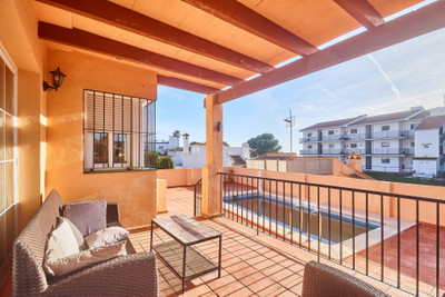 From this floor, we access a spacious terrace with a pergola, ideal for breakfasts in the sun, family meals, or moments of relaxation. This terrace connects directly to the private patio, perfect for enjoying the pool, outdoor areas, and the Costa del Sol climate year-round.