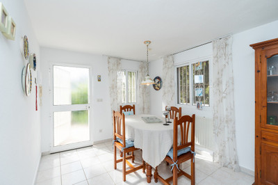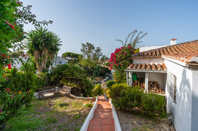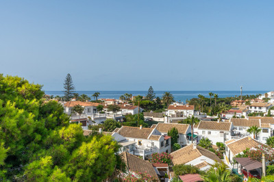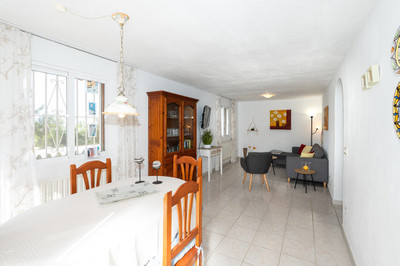 Traditional house in El Faro in Mijas-Costa with two levels and with beautiful sea views offering in the main residence a living room with separate dining room and bright terrace, kitchen, two bedrooms and two bathrooms. The guest apartment offers a living room, kitchen, and one bedroom and bathroom. The house has a lovely roof terrace with sun all day, storage room and ample garage. Central gas central heating in the guest apartment and underfloor heating in the main house. Ideal family house just a short drive from the beach and from Fuengirola.