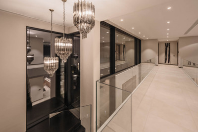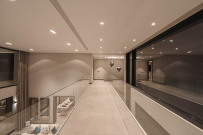 Designed by a distinguished architect, this villa is spread over two levels with an impressive built area. It features five luxurious bedrooms, each with its ensuite bathroom, an additional guest toilet, and a guest apartment that matches the main villa's standards.