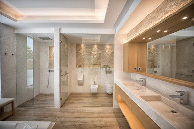 Built with eco-friendly principles, the villa incorporates the latest advancements in home automation, underfloor heating with parquet floors, and sophisticated ceiling designs. Energy-efficient LED lighting and air conditioning systems are seamlessly integrated, and high-speed internet and Wi-Fi connectivity are available throughout the property. Large fitted wardrobes, expansive glass doors, and tasteful design elements add to the home’s functionality and aesthetic appeal.