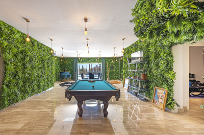 The basement is conditioned as a party room, with wine cellar, gym, soundproof cinema room, accessing the pool with night lighting.