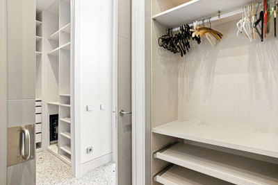 The entrance level consists of a private, self-contained 1-bedroom apartment, 2 guest bedrooms with en-suite bathrooms, and an office space. There's a 4-car garage with an electric car charging point, 2 large storage rooms, and a technical room housing all the villa's machinery.