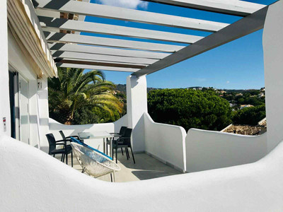 Other features of this property include: gated community with modern app-controlled access. Sea views. Private pool with outdoor shower, fenced in garden, terraces and BBQ. Infrared heaters. Rain gutters. Solar panels for water heating. New air conditioning units with filters. Preinstalled alarm system. Electric underfloor heating in the 2 main bathrooms. Fireplace in the living room. Partially furnished. In addition, the complex offers a large communal pool with club house and BBQ area and a Tennis court.