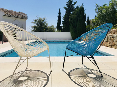 Discover this beautiful detached Villa that offers an abundance of privacy, nested in the heart of Elviria. Situated in a well maintained gated residential community of 19 Villas, it's surrounded by nature and is only a 5 minute drive away from sandy beaches and amenities.