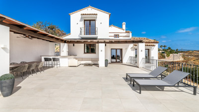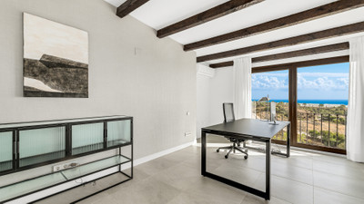 We are delighted to offer this exquisite modern Andalusian residence, boasting sweeping views of the sea and surrounding mountains.