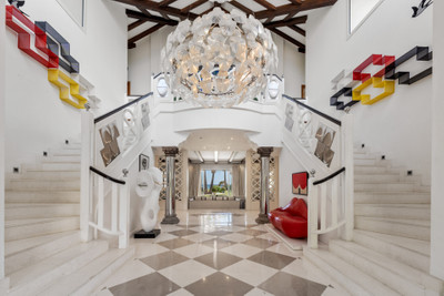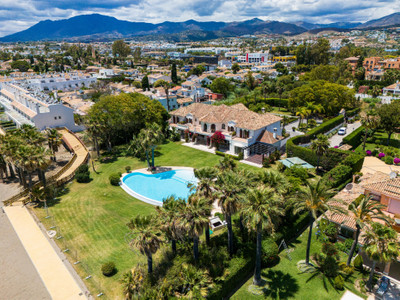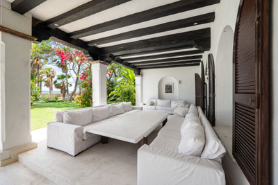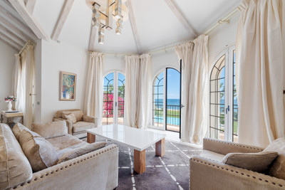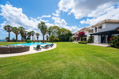 Villa Alcazar is a grand beachfront mansion on the New Golden Mile in Estepona. The villa sits frontline to the sea with direct beach access and panoramic Mediterranean views. This luxury property offers expansive living areas, seven bedrooms, elegant terraces and beautifully landscaped gardens designed for privacy and comfort.