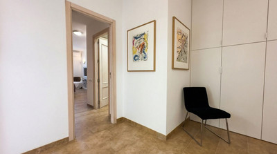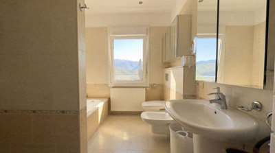 A marble staircase leads to the lower level. Here you will find a guest apartment with an ensuite bathroom and its own spacious kitchen. Next to the guest quarters, passing through the massive garage (55 m²!), is a fourth bedroom, that can also be used as an office. Additionally, this level houses the technical room (with the pool pump) and a storage/workshop area of 30 m². Given the space and the existing plumbing, this floor offers ample possibilities to create 2 or 3 extra guest rooms—ideal for starting a B&B.