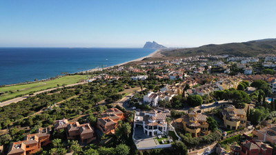 Villa on the seafront of La Alcaidesa. Its impressive views are focused on the La Alcaidesa Lighthouse, the sea and in the background the Rock of Gibraltar.