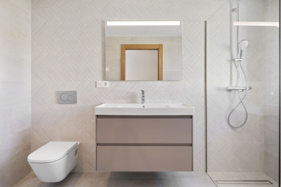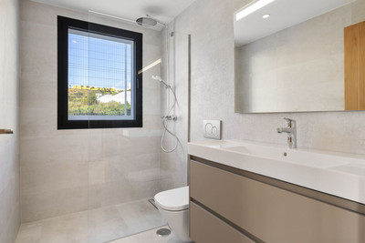 The two bedrooms at the front of the house have sliding doors that open onto a terrace with once more beautiful views. Like the ground floor is also this floor equipped with underfloor heating.