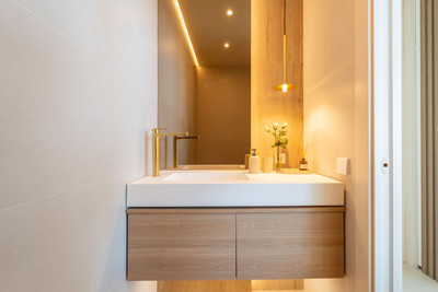 On the entrance level, you’ll find a spacious double-height living room, dining area, and fully fitted designer kitchen, plus a guest toilet. All rooms enjoy breathtaking panoramic views. A floating staircase leads to the upper floor.