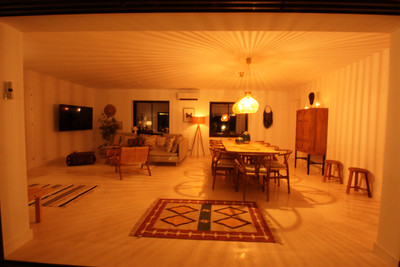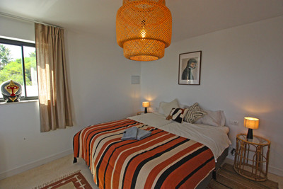 The main house has 3 bedrooms, 2 bathrooms and a big kitchen facing the front terrace, all in one level and connected to the pool area. Under the terrace there is an annex bedroom of aprox 25m2 with its own small chill out terrace, and en suite bathroom.