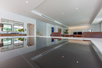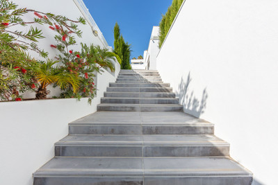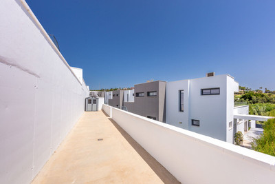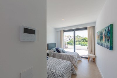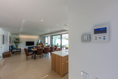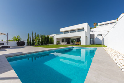 Magnificent contemporary-style villa, recently built using high-quality materials, offering beautiful and relaxing views of the sea and green areas. Presented in impeccable condition and exceptionally well located in a quiet residential area, with supermarkets, restaurants, a gym, hairdresser, and other amenities just 200 metres away, 800 metres from the attractive Puerto de la Duquesa, and 500 metres from the magnificent beaches of Manilva, while the lively town of Sabinillas, with all kinds of shops and services, is only 1.5 km away. Thanks to its southeast orientation, the property enjoys sunshine throughout the day and stunning sunrise views every morning. The villa is distributed over two floors and features a spacious 46 m² garage for two vehicles located at the entrance of the property, as well as a large 15 m² storage room. It boasts a generous living–dining room with access to a spacious porch, which can easily be enclosed with glass curtains. All bedrooms are spacious and benefit from abundant natural light and privacy. Outstanding features include underfloor heating throughout the property, a high-quality water filtration system with pressure pump, electric shutters and blinds, mosquito screens on all windows, and a home automation system. The garden is very private and easy to maintain thanks to its high-quality artificial grass, and includes a swimming pool, exterior lighting, and a pleasant chill-out area, ideal for relaxation and outdoor living. This villa represents an exceptional opportunity that is hard to match and is highly recommended for viewing.