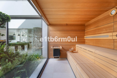 Entertainment & Wellness Floor A true entertainment haven: dedicated to entertainment and relaxation, including a playroom, bar, TV room, Pre installed cinema room, Gym, and SPA with sauna, steam room, and 8-people jacuzzi, all rooms are formed around a zen interior patio and open onto pool and exterior entertaining area