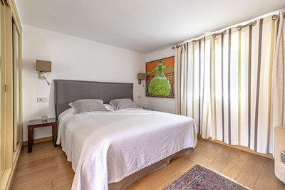 The main level welcomes you with a bright living room featuring a fireplace, a separate dining area, and direct access to covered and open terraces overlooking the garden and pool. A fully fitted Bulthaup kitchen provides ample storage and workspace, ideal for everyday living and entertaining. The villa offers five well-proportioned bedrooms, including a spacious master suite, and several bathrooms finished in a modern style.
