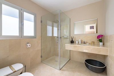 Located within a secure gated community surrounded by lush Mediterranean greenery, the villa offers full privacy, especially around the stylish modern pool. The outdoor area is beautifully furnished for relaxation and al fresco dining, providing the perfect setting to unwind or entertain under the Andalusian sun.