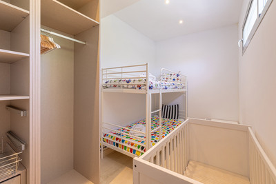 The villa boasts three generously sized bedrooms, each with its en-suite bathroom, offering guests privacy and comfort. Every space reflects a sophisticated, minimalist aesthetic, designed to enhance relaxation while maintaining a modern and functional feel.