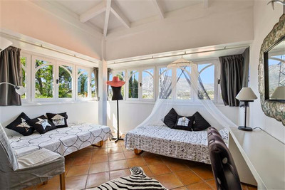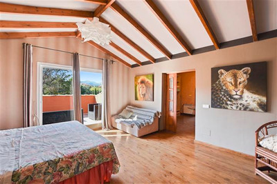 Distributed on two floors. From the entrance of the house we access a garden area with access to the covered entrance with porch. Entrance hall with guest room, access to beautiful large kitchen with separate dining room with an exceptional skylight in the ceiling that makes a very pleasant atmosphere at any time of the day. In the kitchen we have a room with bathroom for service personnel. From this large kitchen-dining room we have access to garden and barbecue area, we also have access to closed louge with large sofa and television. Spacious living room with large fireplace and access to terrace and garden. It also has two large bedrooms ensuite on the living room floor. We go up wooden stairs that gives access to the main room with dress and bathroom with jacuzzi. On the same floor there is another room with a private terrace.