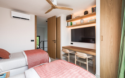 The villa offers six double bedrooms, five bathrooms, four of them en-suite, and 2 guest toilets; three of the bedrooms enjoy direct access to a terrace with mountain and natural surroundings views. There is parking space for 2 cars and EV charging station.