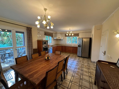 Outside, the villa offers a privileged setting thanks to its well-maintained mature gardens, private pool, and various terraces, both covered and uncovered, ideal for lounge areas, outdoor dining, or enjoying panoramic views of the sea and garden. Additional highlights include a barbecue area, balcony, and a carport with included parking, providing ease and security of access.