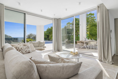 This space is thoughtfully designed to blend seamlessly with the spacious outdoor terrace and pool, creating a natural flow between indoor comfort and outdoor living.