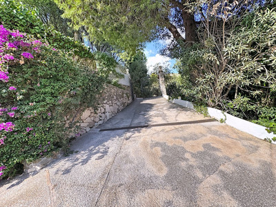 You enter through one of two gated driveways leading to the welcoming entrance hall. The spacious living room opens onto a sunny terrace with breathtaking sea views. To the right, an open-plan dining area also connects to the terrace — perfect for entertaining while enjoying the scenery. The rustic-style kitchen, fully fitted and warm in character, includes a separate utility room and access to a lovely covered porch surrounded by plants and flowers — an ideal spot to relax.