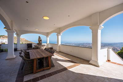 The property is surrounded by a wraparound garden with multiple terraces, a saltwater infinity pool plus a children’s pool, and a two-car garage. An eco-friendly septic tank recycles water for irrigation. This villa combines modern luxury, energy efficiency, and unbeatable panoramic views, all in a prime Costa del Sol location.